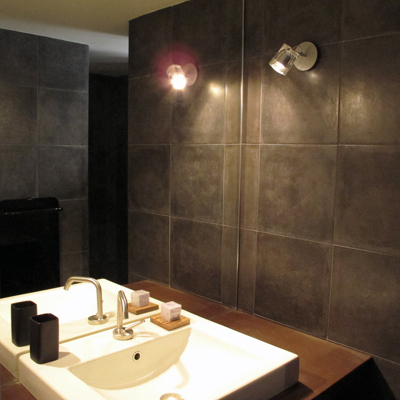 Aux Pierres Sauvages, le fer, le bois, et le béton teinté, laissés brut, se partagent avec des lins de qualité (Caravane et Society) l'harmonie intérieure des cinq espaces conçus comme des écrins.